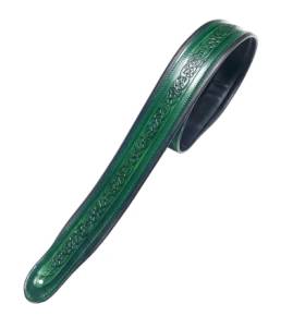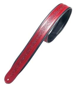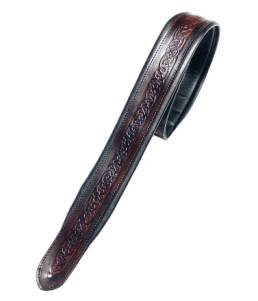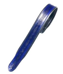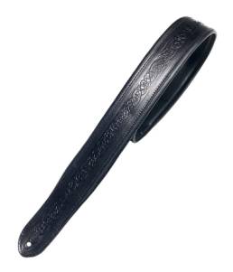 The padded embossed strap is a strap that ensures comfort while standing out from the rest! Made from full grain natural tooling leather the Celtic pattern is embossed onto the leather then dyed by hand in an array of six colors! The strap is then suede lined and stitched onto a padded back providing a comfortable fit and an eye catching contrasting stitch. Fitted with a fully Adjustable end strap, this strap is suitable for all styles of musician.